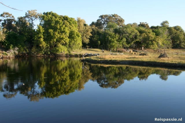 Aan het eind van de dag in Maun. De campsite die we op het oog hadden blijkt gesloten. Maar gelukkig zitten er zat. We belanden bij de Old Bridge Backpackers. Aan de rivier en we hebben een mooi plekje onder de bomen. En hier kan je nog enigszins betaalbare trips de Onkovango delta in boeken.