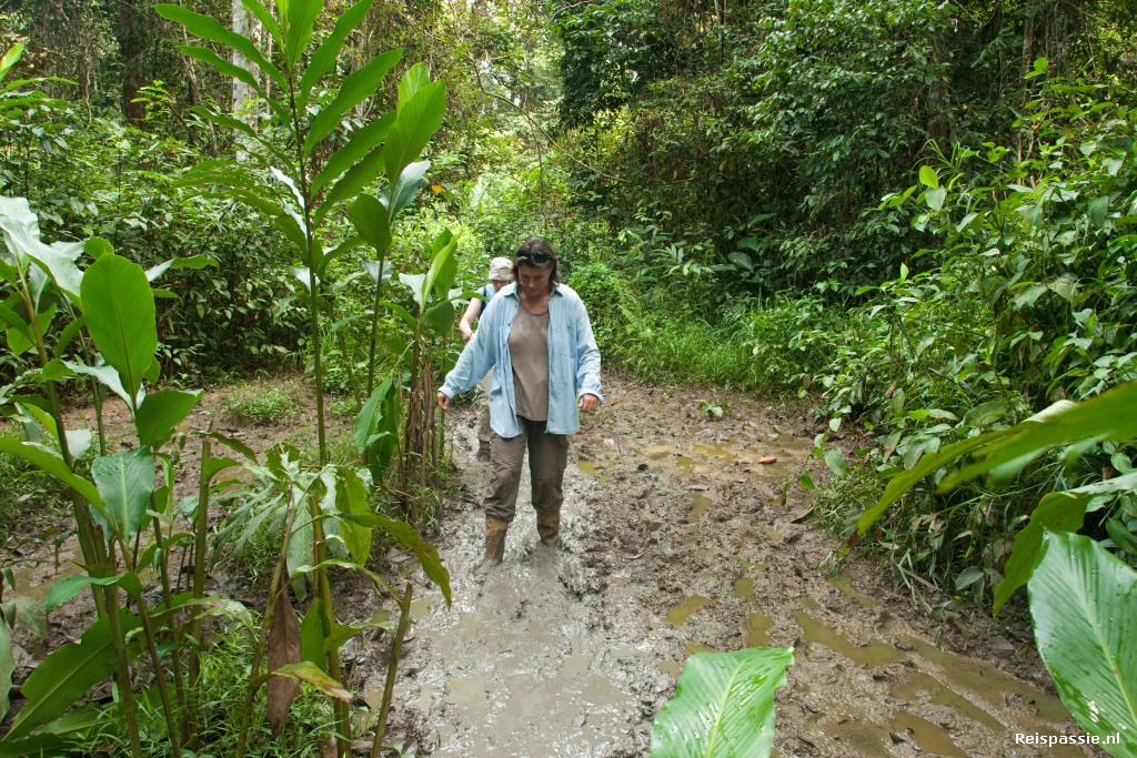 Ondanks deze vrij trieste constatering was het toch een leuk tripje. We maken nog wat jungle wandelingen. Een keer overdag, twee uur lang door twintig centimeter modder stappen. Vond Anita geweldig. En twee keer 's avonds. Deze waren wel interessant. Veel insecten, hagedissen, slapende vogeltjes en een slow lori (aap) gezien.