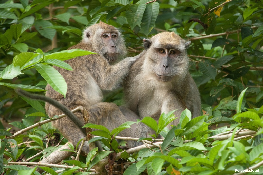 Kota Kinabalu verlaten we de volgende ochtend al weer. We hebben een trip geboekt naar Kinabatangan en gelijk maar vervoer erbij geregeld. Dus comfortabel met een minibusje richting het oosten. Het landschap waar we doorheen rijden is al even bedroevend saai als ik me herinner van het vaste land van een tijd geleden; palmplantages zover je kan kijken. Het was wellicht wat naïef maar ik had gehoopt toch al wat jungle te zien, al was het maar in de verte. Maar het zit er hier niet in, met militaire precisie zijn alle heuvels gestript en voorzien van palmbomen. Er staat vrijwel niets anders meer over een stuk van 250 kilometer. Pas als we aankomen bij de Kinabatangan rivier bij Bilit waar we de komende dagen gaan verblijven verschijnt er wat bos. Godzijdank.