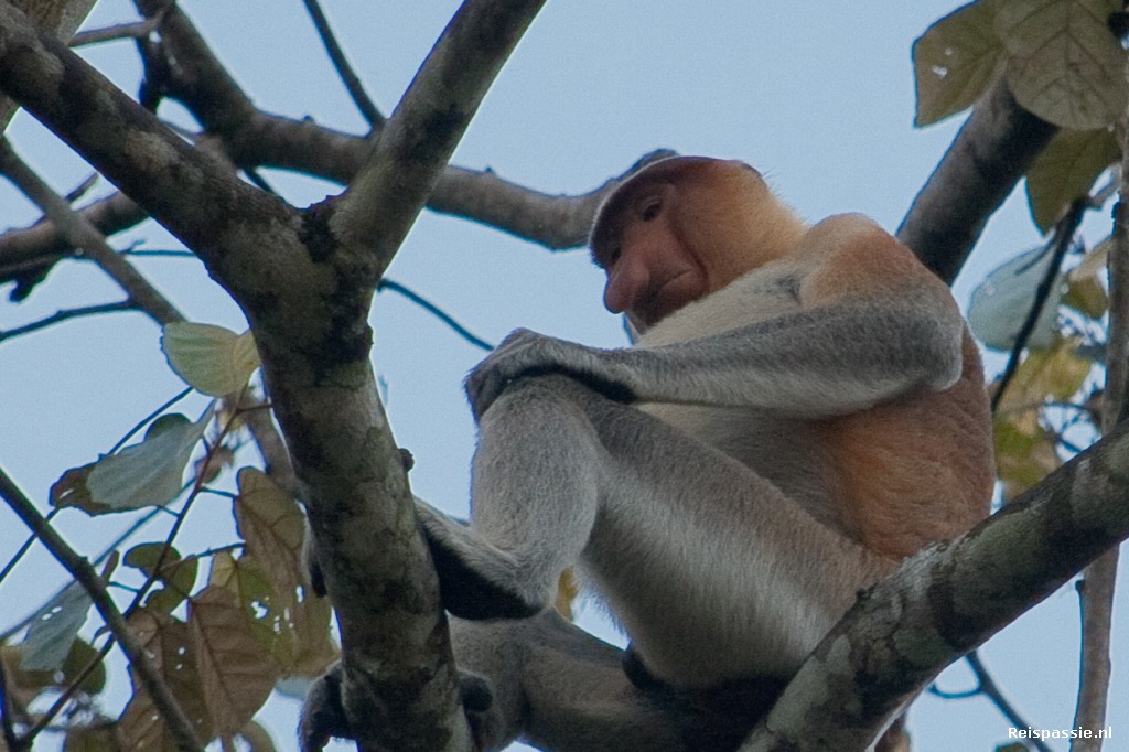 We varen eerst een eindje over de Kinabatangan zelf, dit hier al is een brede rivier. Af en toe zien we in de bomen langs de rivier al wat Makaken en neushoornvogels. Maar het wordt pas echt mooi als we een veel smallere zijrivier op gaan. Hier wemelt het van het dierenleven. We zien een urang utan, bomen vol neusapen, makaken en leaf monkey's, otters, mangrove slangen, krokodillen, varanen en heel veel verschillende vogels. Vooral diverse soorten prachtige neushoornvogels. De olifanten zitten op dit moment jammer genoeg nog te ver weg.