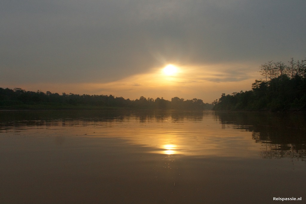 We maken vier van deze boot tochtjes, 2x om zes uur 's ochtends en twee keer aan het eind van de dag vlak voor het donker wordt. Iedere keer valt er weer een hoop te zien. Helaas is ook deze “jungle” maar heel summier. De strook bos langs de rivier is soms zo smal dat je de palmplantages er vaak doorheen ziet, soms staan ze gewoon tot aan het water. En oorspronkelijke jungle is het ook al niet meer, twintig jaar geleden is ook dit allemaal gekapt. Het is een heel jong bos zonder hoge bomen. Om echte jungle te zien moet je dus nog veel verder het binnenland in.