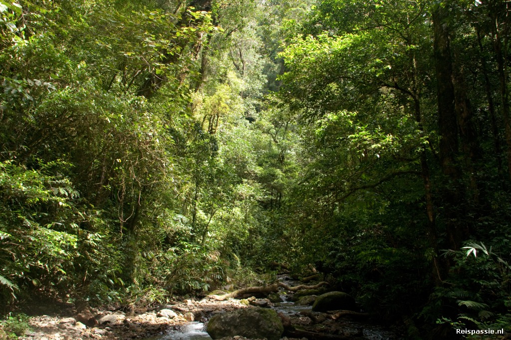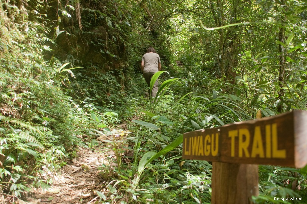 We hebben besloten de beklimming naar de top te laten wat hij is en gewoon een dag door het nationale park te wandelen. Het is echt heerlijk lopen hier, in de schaduw van het regenwoud met de aangename temperatuur op deze hoogte. We lopen de Liwagu trail langs de gelijknamige rivier. Mooie route met af en toe fraai uitzichten over het regenwoud tegen de helling van Mt. Kinabalu. Op het eindpunt via de verharde weg weer terug gelopen naar de entree.