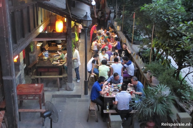 Dan door naar de plek waar ons Chinatripje begon; Chongqing. Alleen gaan we nu voor het eerst naar het centrum. Chongqing is enorm, de 4e metropool van China. Het is ook een van de steden die tot het “fornuis” van China behoren. Nergens wordt het in de zomer zo heet als hier schijnt het. En inderdaad, als we de bus uitstappen staat de kachel aardig aan. Er valt weer eens slecht een taxi te scoren maar gelukkig kent ook Chongqing z'n snorders en zo rijden we met een dame in een soort brommobiel naar ons hostel. Ach, als je er maar komt.