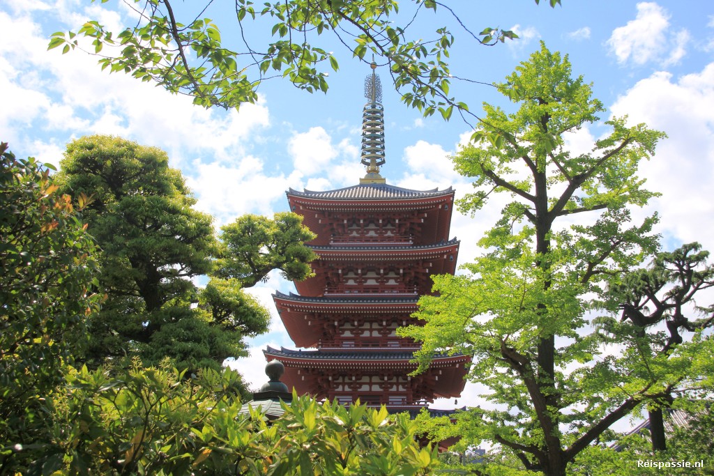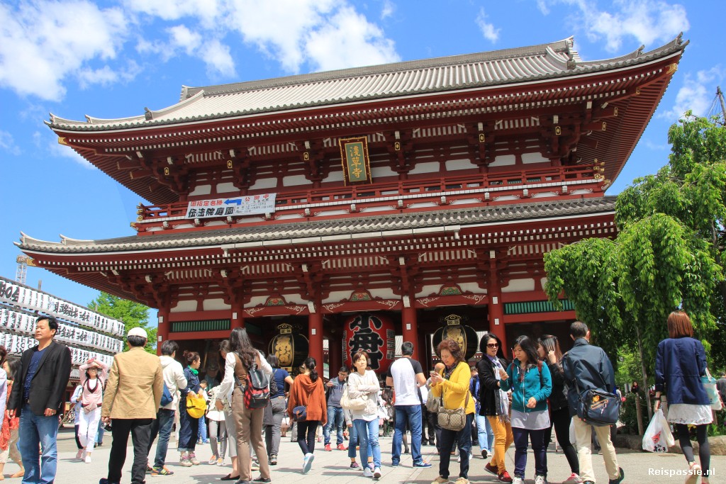 Eerst naar de wijk Asakusa om de Senso Ji te bezoeken. Alle straten richting de tempel zien zwart van de mensen. Hier hebben ze dus allemaal verzameld. gedwee hobbelen we mee in de stroom richting tempel door straatjes met aan weerszijde een eindeloze rij winkeltjes met onmisbare souvenirs. Voor de Japanse toerist dan. Geregeld passeren we ook winkeltjes met heel interessante culinaire experimenten. De groene thee koekjes geproefd. Waren best lekker!