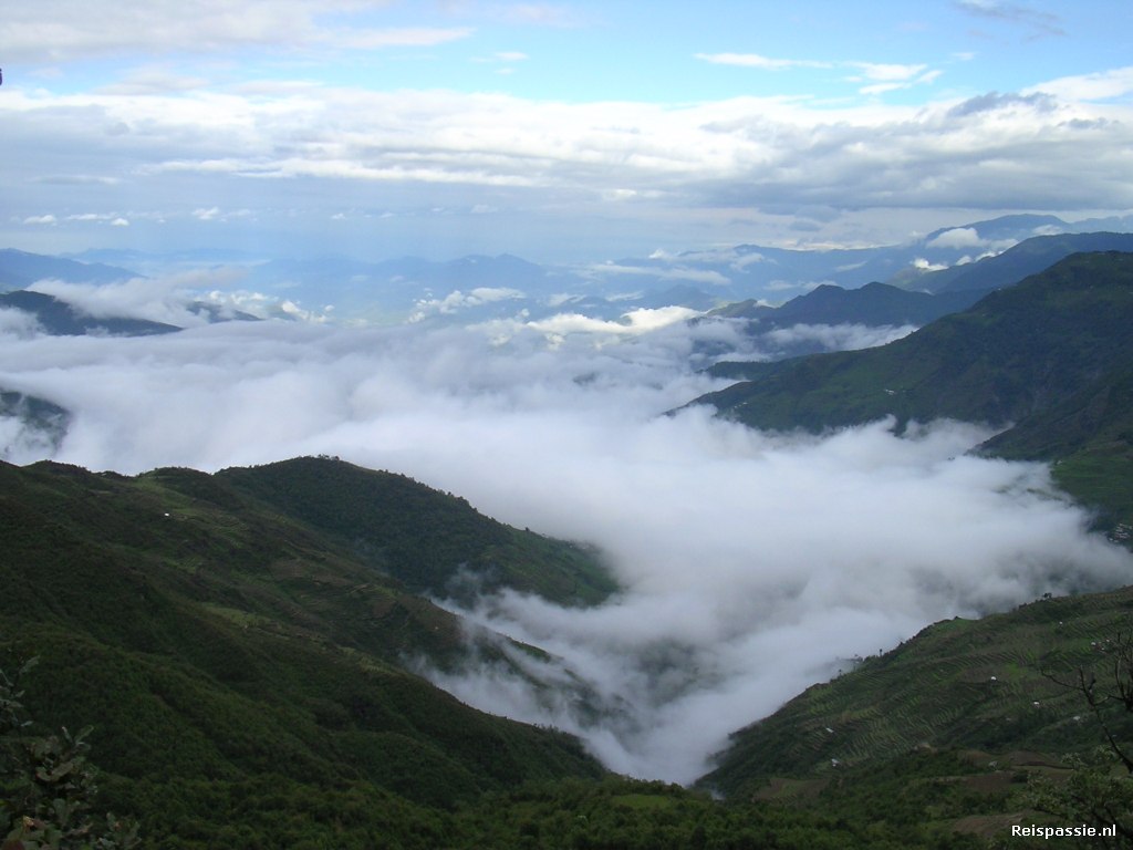 De busrit was er weer een om snel te vergeten. Een afgeladen bus zowel binnen als buiten (op het dak) en een route die met duizend bochten omhoog slingert. De helft van de passagiers hangt uiteindelijk uit een raampje z'n ontbijt aan de vogeltjes te voeren. En ook wij voelen ons verre van fit. De welkome onderbrekingen komen van de militaire checkpoints waar iedereen de bus moet verlaten. Eigenlijk kunnen wij gewoon blijven zitten maar nu lopen we lekker met de rest langs de militairen. Eindelijk frisse lucht en een beetje beweging.
