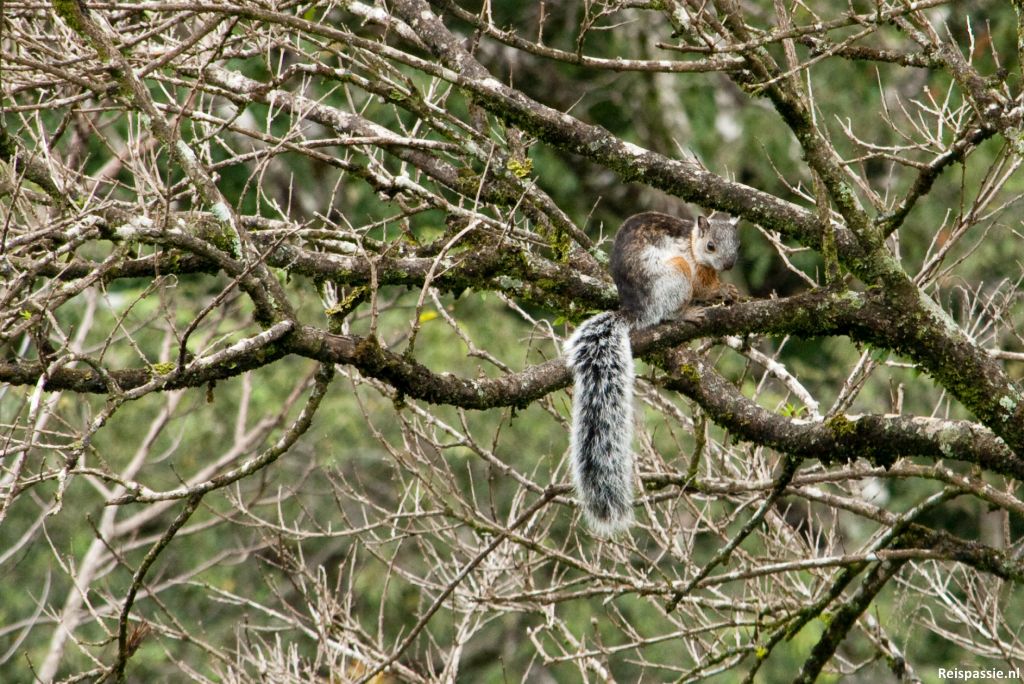 In het park zijn verschillende routes uitgezet die je kan lopen. We kiezen de twee langste en zijn zo een uur of vier aan de wandel. Het nevelwoud is prachtig. Door de enorme luchtvochtigheid en de wolken die continue aanwezig zijn hangt het vol met mossen en varens. De bomen zijn er geheel mee bedekt. Het nevelige maakt dat het een mooi mysterieus sfeertje heeft. Gelukkig hebben we vanochtend onze jassen aangedaan want het is wel behoorlijk fris, 14 graden, 100% luchtvochtigheid en soms harde wind, dan kan je wel een jas gebruiken!