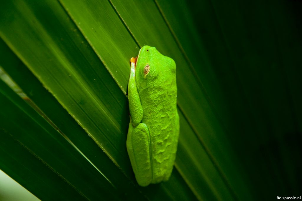 Waaronder de “blue jeans frog” een rood kikkertje met een blauwe broek aan, en een prachtige groene kikker op een blad (zie de foto). Er is ook een vlindertuin met prachtige vlinders. In de bomen liggen twee luiaards te slapen (tja inkoppertje...), deze aparte beesten verplaatsen zich heel traag hangend door de bomen, als ze dus al bewegen want die twee van vandaag zitten als een balletje haren in de boom. Verder een knaagdier met de naam agouti gezien. Lijkt een beetje op een grote eekhoorn maar dan zonder staart. Was een leuk tripje