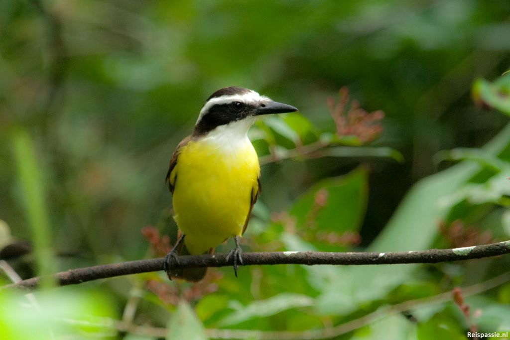 De tweede dag in La Fortuna huren we fietsen bij de locale fietsenmaker. Twee mountainbikes. We gaan naar een prive reservaatje hier in de buurt. Het Ecocentro Danaus. Het eerste stuk is mooi heuvel(vulkaan) afwaarts. In een half uurtje zijn we er al. Dit reservaat is door een aantal mensen aangelegd om een meertje heen. Vijftien jaar geleden liepen er nog koeien, nu is het een klein regenwoudje. Slim aangelegd met een hoop bomen en planten die vruchten dragen waar vogels en dieren van houden. Daardoor heeft het nu een grote hoeveelheid bewoners in dit kleine gebiedje. En dat blijkt, we zien heel wat mooie vogels, kikkers en hagedissen.