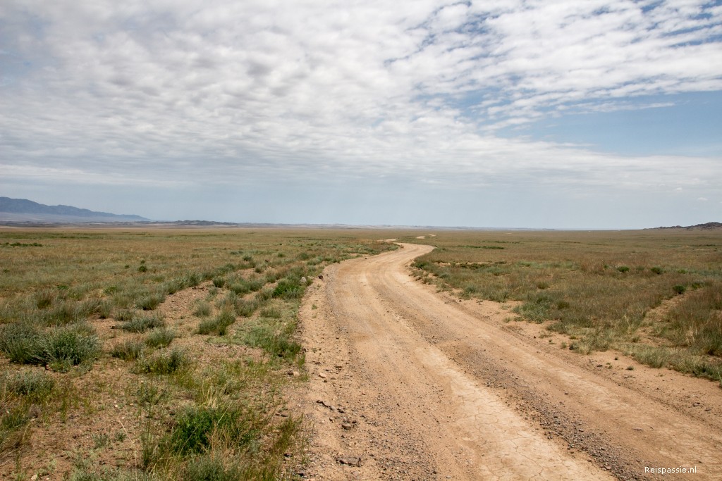 En dan keert de ruimte terug en rijden we over de steppe. Eindeloze vergezichten met wat heuvels en groepjes paarden. Na een uur of drie komt de afslag naar de Charyn Canyon. De weg naar de canyon is onverhard en Sergei gaat eens even lekker los. We vliegen over de hobbels en ribbels. Opeens staat er een slagboom met huisje in de vlakte en zijn we bij de toegang aangekomen. Entree betaald met nog wat extra om ook door de canyon zelf te mogen rijden. En dan op pad. Om in de canyon te komen moet je een heel steil stuk af met enorme gaten. Maar het gaat goed, blij dat we hier niet tegenop hoeven zeggen we nog…