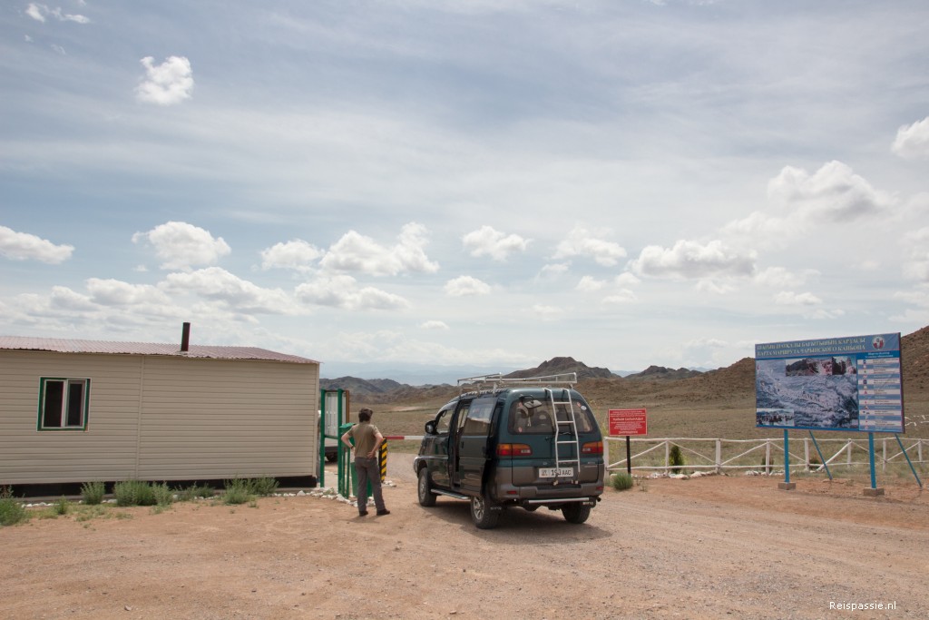 Vandaag gaan we reizen van Almaty naar Karakol. En dan niet via Bishkek, maar via Kegen en door de Karkara valley. Met grensovergang in ‘the-middle-of-nowhere’. Via internet hebben we vooraf een ‘mannetje-met-auto’ geregeld en keurig op de afgesproken tijd staat Sergei op de stoep. Met Mitsubishi 4WD bussie om ook de slechte stukken door te komen.
