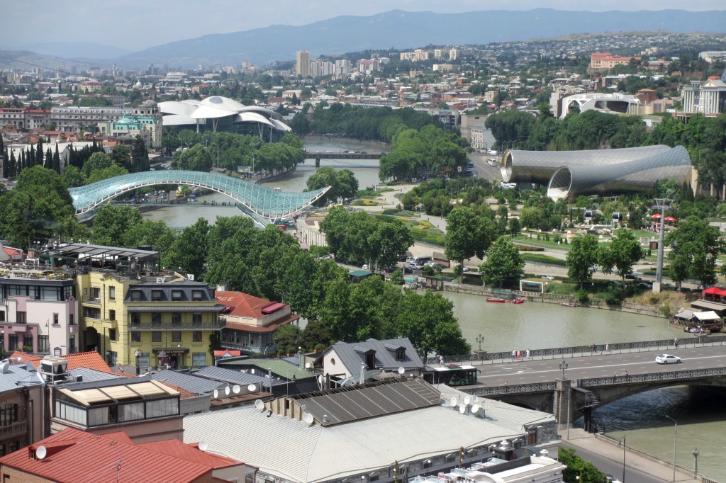 Tbilisi wordt door midden gesneden door de Mtkvari rivier, een heel aantal bruggen verbindt de ene kant van de stad met de andere waaronder de fraaie Peace Bridge. En al ga je ook maar iets weg van de rivier dan beginnen de heuvels waar de stad in gebouwd is. Het oude stadscentrum is nog aardig vlak maar de wijken er om heen betekenen klimmen! Niet enorm, maar het zijn vaak toch leuke heuveltjes tijdens onze rondjes door de stad.