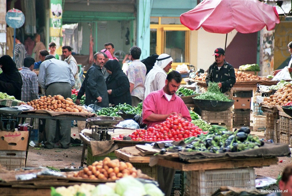 Deir es-Zur is een heel puur stadje. Heel prettig om te verblijven. Een orientaalse chaos in de woestijn. Met een paar kleurrijke groenten markten. (veel vruchtbare grond om de Eufraat) en een leven wat zich geheel op straat af speelt. s' Ochtends staat de stoep voor ons hotel vol met teilen gevuld met stukken geitenkaas, even verderop ligt het vol met alle delen van schapen die kennelijk voor verkoop geschikt zijn; van ingewanden tot koppen, keurig op een rijtje. Ook aquaria vol met allerhande olijven en shopjes waar de koffie vers gemalen wordt. Heerlijk om een paar uurtjes te struinen. We eten die avond in een van de vele kip/kebab tenten. Qua eten is de variatie heel beperkt; als je niet van kebab, shoarma of kip houdt ben je de sigaar. En dan ook nog eens van heel wisselende kwaliteit. Vanavond was zo'n snel te vergeten maaltijd. Vet-vies-vreselijk....