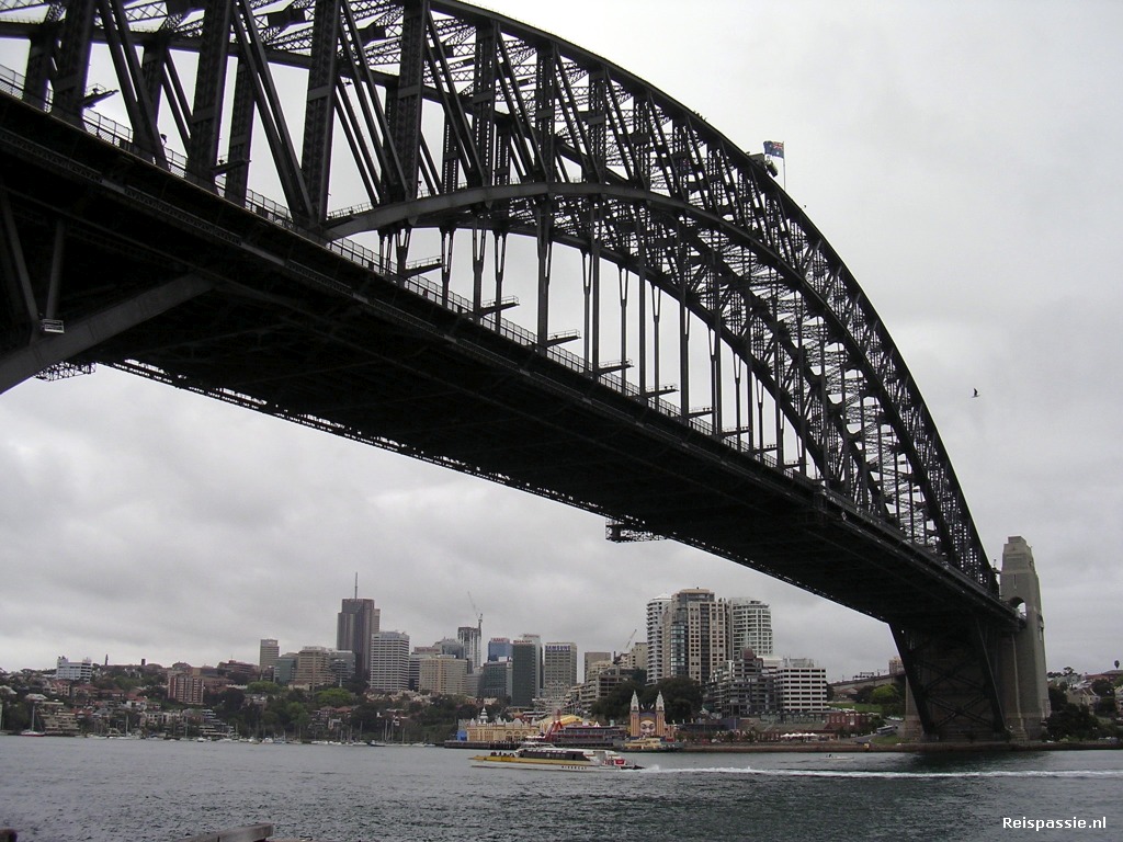 En dan op naar Sydney. Er ligt een enorme snelweg de Blue mountains in dus we zijn in no time er ook weer uit. En dan is het nog maar een uurtje rijden. We besluiten eerst nog een camping te zoeken in de buurt. Dat zoeken valt nog niet mee want deze is echt met zorg verstopt in een buitenwijk in Sydney. Maar na wat omzwervingen toch gevonden. Het is meteen ook de duurste tot nu toe! De grote stad heeft zo zijn prijzen. Maar altijd nog veel goedkoper dan in een backpackers dus gaan met die banaan. Die middag met de bus en trein naar het centrum gegaan. Vanuit de trein voor het eerst zicht op de Harbour bridge en het Sydney opera house. Feest der herkenning.