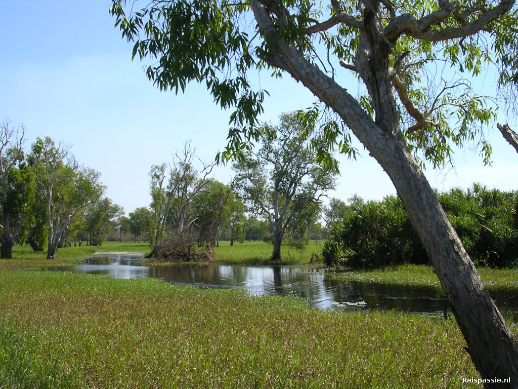 Vervolgens naar Kakadu gereden. Dit is een enorm nationaal park in het noorden. We zijn hier een paar dagen geweest. De afstanden tussen de verschillende bijzondere bezienswaardigheden zijn in dit park ook erg groot. Vooral de wetlands zijn erg mooi. Het droge land ligt vol met grote rivieren die de boel onderwater zetten en daardoor een prachtige natuur maken. Het barst ook van het dierenleven. We hebben heel veel bijzondere vogels gezien en nergens ter wereld komen zoveel zoutwaterkrokodillen voor als hier.
