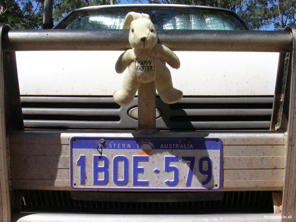 Tennant creek is een dorpje bij de driesprong waar de weg vanaf de oostkust bij noord-zuid weg komt. Het heeft gelukkig dus heel wat voorzieningen waaronder een Ford garage. Bij deze garage zijn we gelijk 's middags langsgegaan. Bij het zien van ons probleem vermoeden ze een lekke pakking en adviseren ze eigenlijk om voortdurend de olie bij te vullen en gewoon door te rijden. Reparatie is hier ook niet mogelijk want ze hebben het erg druk en alle monteurs zijn ziek ...!?