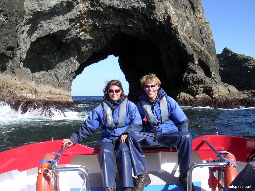 Met een bloedgang tussen de eilanden door. Prachtige baaitjes en stranden vliegen aan ons voorbij. Langs een eilandje met zeehonden naar het eindpunt "The hole in the rock" oftewel een eilandje met een groot door de zee uitgesleten gat waar de boot doorheen kan varen. Een spectaculair tripje door een prachtige baai met eilandjes.
