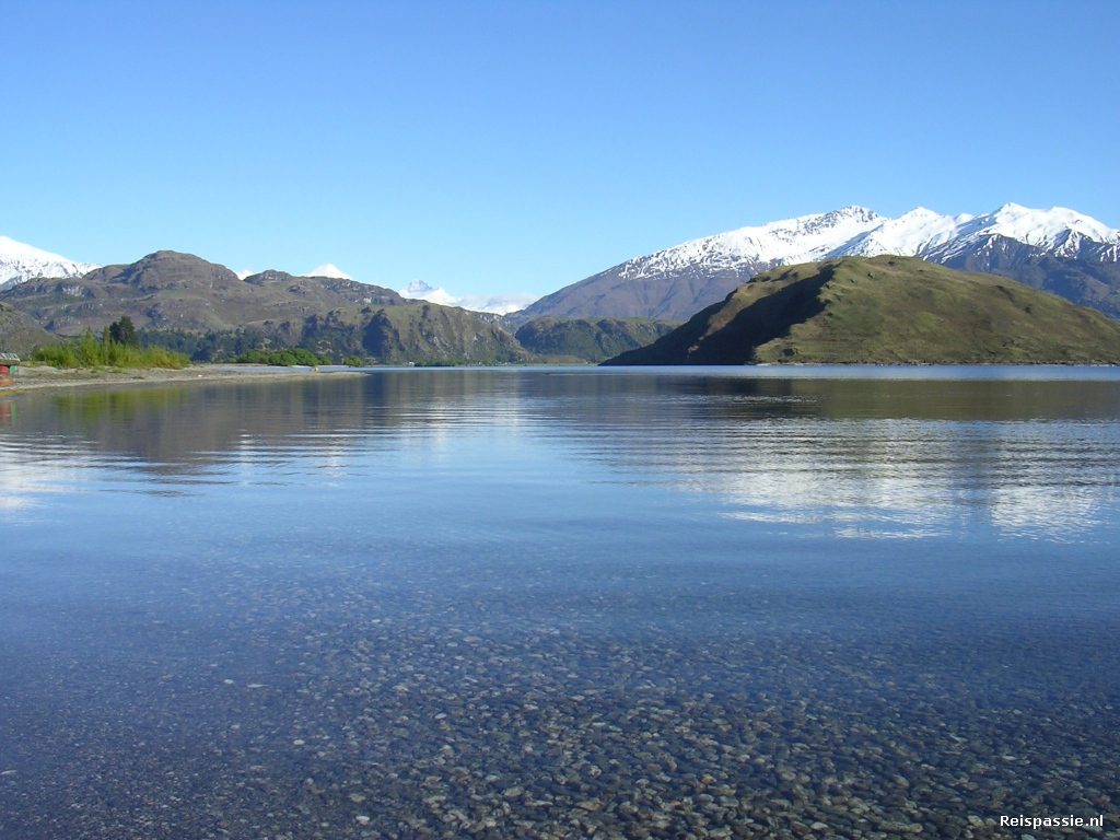We gaat de Mt. Iron op, een heuvel vlak naast Wanaka. Het is niet heel lang lopen en boven is een mooi uitzicht op het Wanakameer en het iets verderop gelegen Haweameer. Vervolgens met het bussie naar een camping buiten Wanaka gegaan aan de weg naar Mt. Aspiring. Morgen willen we in deze omgeving ook een wandeling gaan maken das dat komt mooi uit. De camping blijkt weer een toppertje te zijn qua ligging. Je moet het soms treffen! We staan aan het meer met geweldig uitzicht op de bergen.