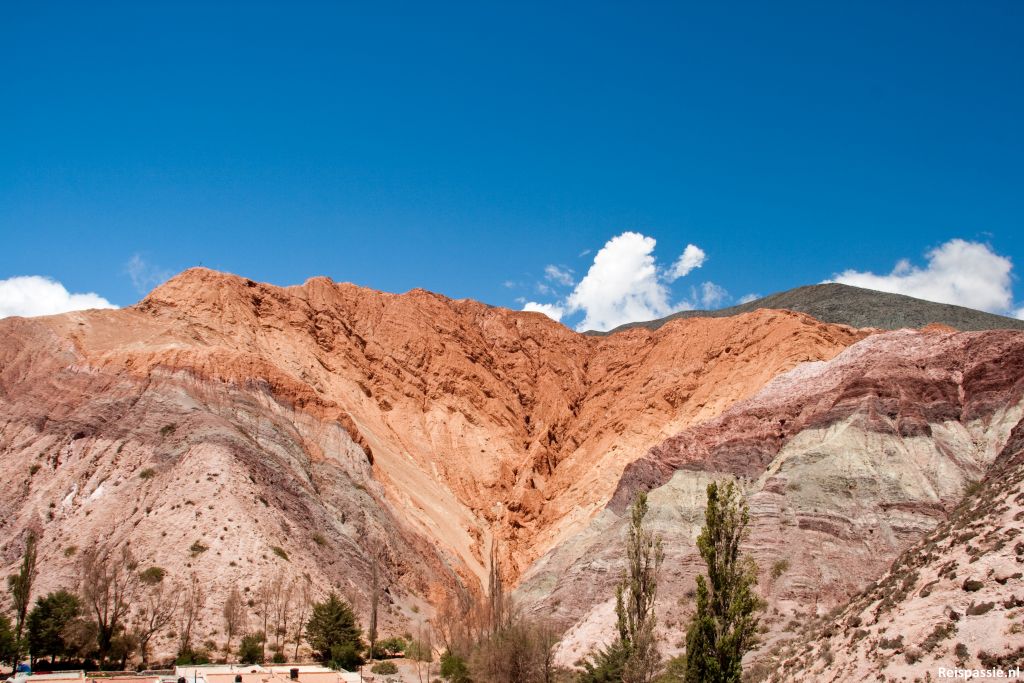 De dag er op een bus gepakt naar een dorpje in de buurt; Purmamarca. Het dorpje ligt pal tegen de “Cerro de siete colores”, de rots met de zeven kleuren. Het is inderdaad een pracht gezicht, de kleuren spatten er gewoon van af. Naast de gekleurde rots ligt een groene vallei, mooi contrast.