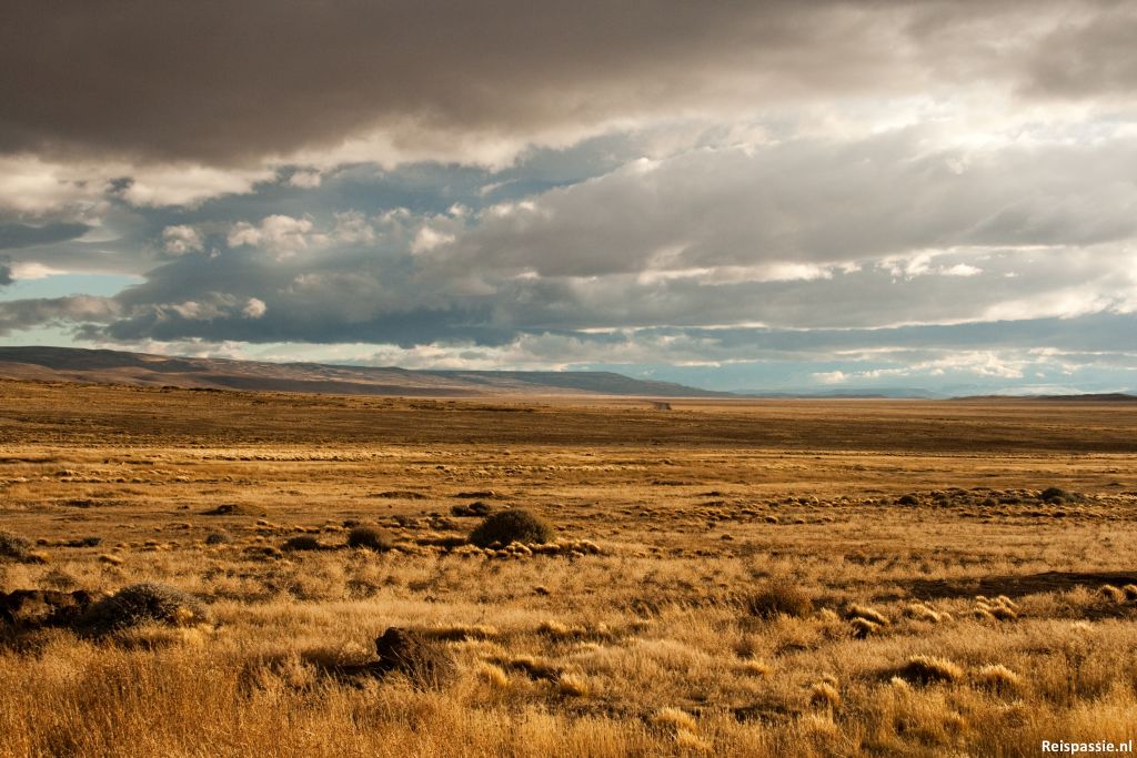 In de verte liggen meestal wel wat bergen of heuvels, verder is het vlak met weinig begroeiing. Polletjes geel-goud gras en ander klein spul. Toch is het prachtig om te zien. De panorama's met wolkenpartijen zijn geweldig. De grootste afleiding op dag 1 is dat de chauffeur plotseling stopt en de bus uitspringt en een dier wat voor de bus uit rent probeert te vangen.