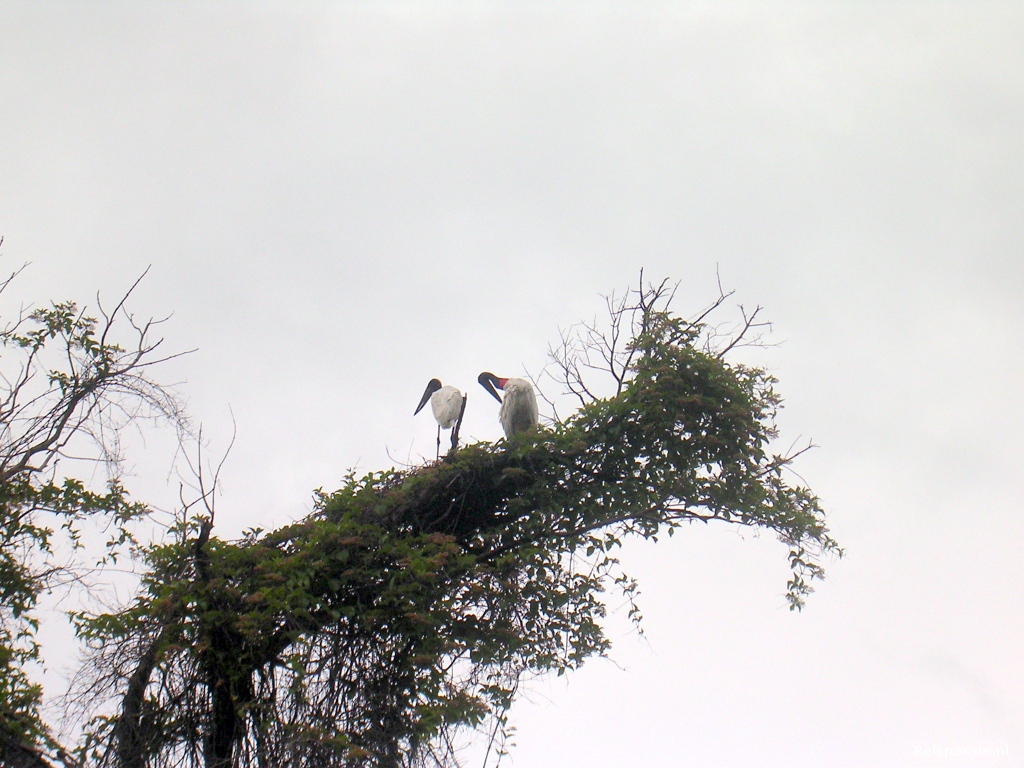 Maar ondertussen varen we ook door een prachtig gebied. De pampas zijn enorme vlaktes met manshoog riet. De rivier slingert hier met duizenden bochten doorheen en de oevers van de rivier zijn dichtbegroeid met bomen en struiken. En juist in deze smalle strook bos zitten heel veel dieren waardoor de kans zo groot is om ze te zien.