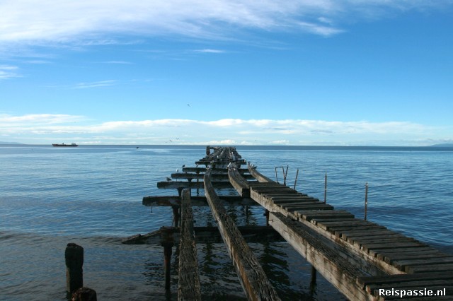De volgende dag op verkenningstocht. Punta Arenas heeft een gloednieuwe “boulevard” voor wandelaars langs de kust. Heel fraai gedaan. Via deze route naar het centrum gelopen en wat bureautjes langs gegaan voor informatie over een bezoek aan de pinguïns. Bij eentje een ticket geboekt voor later die middag. Het is een stad met een redelijk fraai centrum. Leuk plaza met statige gebouwen. Moeilijk voor te stellen dat er hier een maand of twee geleden zo'n enorme volksoproer was vanwege verhoogde gasprijzen. Toen kon er een week niemand meer in of uit. Maar nu is het weer pais en vree. Tenminste voor zover wij er wat van meekrijgen... Maar ze hadden hier ook wel even wat anders aan het hoofd want na de tsunami in Japan is ook heel Punta Arenas geëvacueerd geweest. Het lijkt me bijna onmogelijk voor die golf om tot hier te komen maar hier in Chili nemen ze na de aardbeving en tsunami ervaring van de afgelopen jaren geen enkel risico meer.
