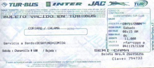 De volgende dag naar Calama. Een langs stuk bussen van elf uur. Voor de derde keer dezelfde film met George Clooney gezien..., reizen met dezelfde maatschappij heeft zo z'n beperkingen.