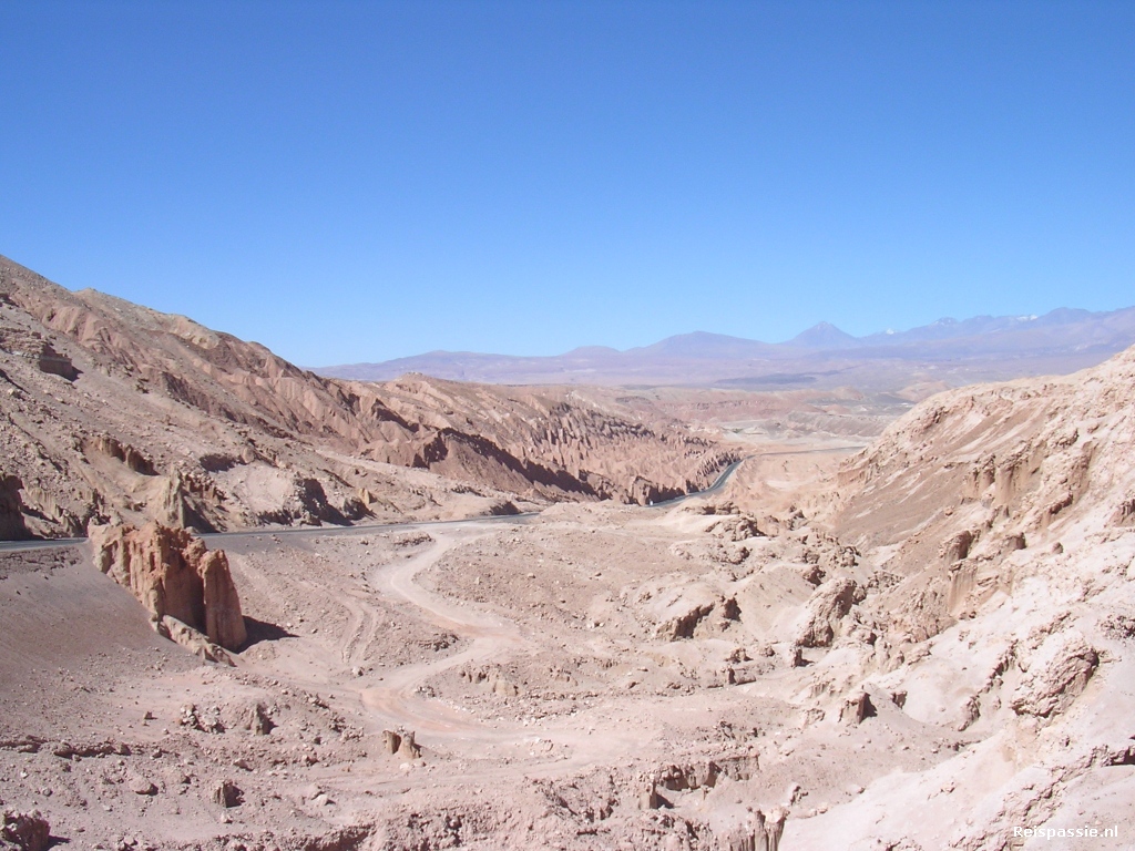 Maar voor ons is het vooral een stop-over op weg naar San Pedro de Atacama. Daarom de volgende dag gelijk al weer vertrokken. Twee uurtje's bussen door nog meer woestijn. Gaandeweg wordt het wel steeds mooier. We rijden langs Vallee de Luna (maanvallei) en die doet z'n naam echt eer aan. Prachtige rostformaties. Gaan we binnenkort uit San Pedro nog wat beter bekijken.