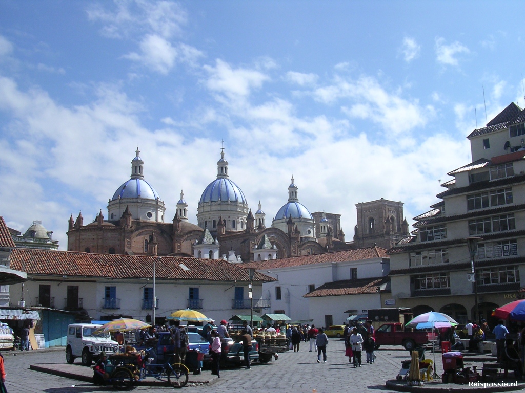 Cuenca is de derde stad van Ecuador en heeft een mooie oude binnenstad. Het geheel staat inmiddels ook al op de Uneso lijst. De hele middag rondgezworven en uiteindelijk op het plaza in het zonnetje wat gezeten. Het is een heel fraai plaza waar je continu muziek op de achtergrond hoort uit luidsprekers tussen de bomen, van pianogepingel tot salsa! Het komt hier overigens ook weer wat welvarender over dan in Peru. De duizenden taxi's uit de Peruaanse steden zijn weer vervangen door prive auto's waarvan er opvallend veel nieuwe rondrijden. Ook veel luxe kledingzaken.