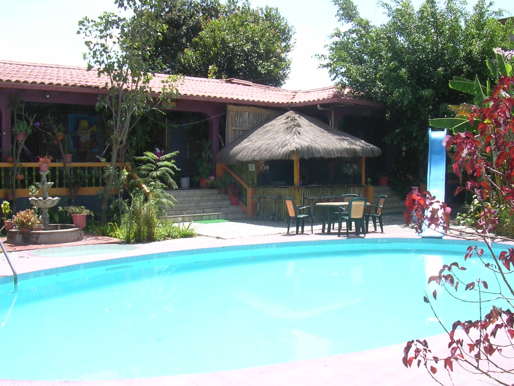 Een uurtje later in Vilcabamba. Dit is een dorpje van niets. Wat huizen en een kerk rond het plaza, nog wat straatjes en dat is het. Heerlijk rustig. Het hostal wat we op het oog hebben is iets buiten het dorpje. Mooi plekje om te relaxen. Er zijn maar een stuk of wat andere reizigers in het hostal. De voorzieningen zijn geweldig. Groot zwembad, sauna, jacuzzi met dvd en surround systeem, biljart en tafeltennistafels, cd speler en tv op de kamer, het kan niet op. En dat voor 6 USD per persoon...