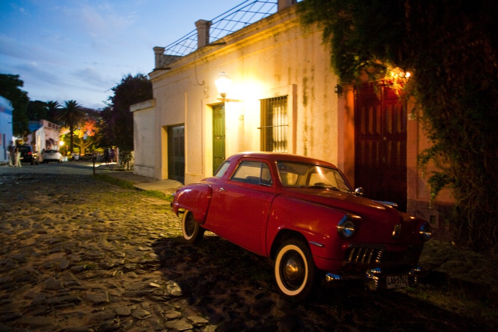Het zit in elk geval vol met Argentijnen die massaal met de golfkarretjes die hier te huur zijn door de keien-straatjes rondjes rijden. Op de een of andere manier staan er hier trouwens ook heel wat klassieke auto's. Mooi opgeknapte en auto's waar de gaten invallen. Het maakt een mooi plaatje, de oude huizen en straten met zo'n wagen voor de deur.
