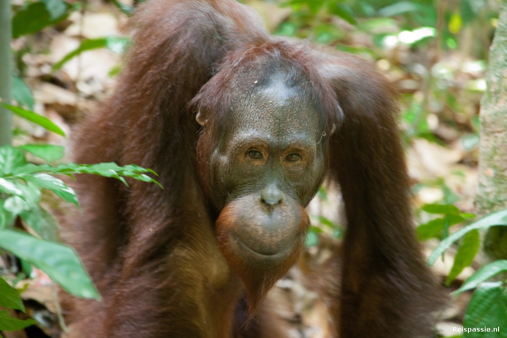 De volgende dag meteen als het Orang utan centrum opent naar binnen gegaan. We zijn de eerste. Voor even is het een oase van rust als we over de boardwalks door het bos wandelen. Een moeder met jong zit in een nest op een meter of vijf van de boardwalk. Prachtig gezicht. Tijdje van genoten. Dan het rondje langs de voederplek volmaakt en eerst weer bij de entree een permit geregeld om later de wandeling door het bos er achter te mogen maken. En dan weer opnieuw de boardwalk op richting voederplek. Nu echter niet meer alleen maar in een lange rij want inmiddels is het druk. De moeder orang utan zit nog steeds met hummel op haar nest maar niemand die het ziet. De hele massa heeft maar een doel; de voederplaats.