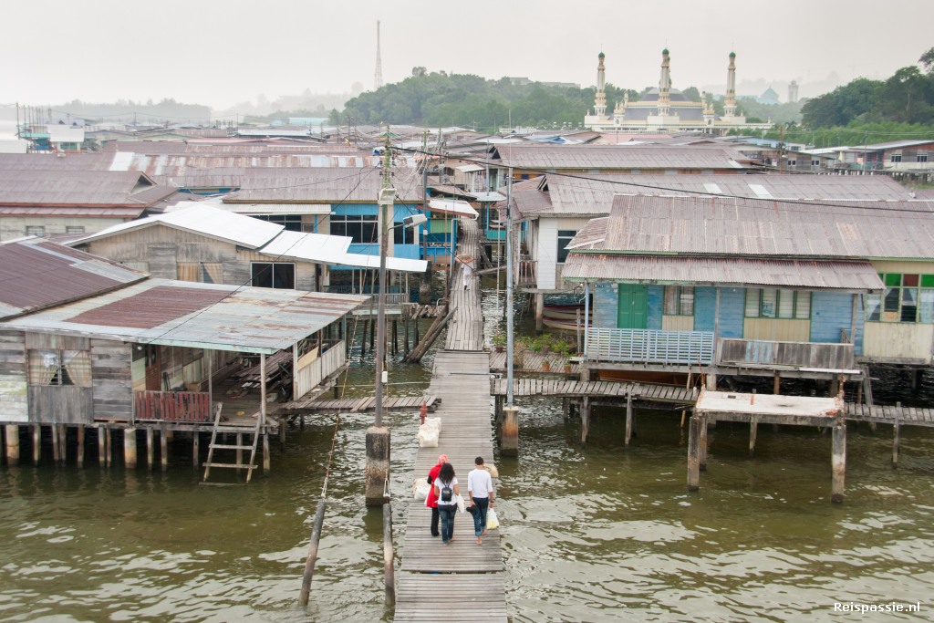 Overal waar je kijkt zie je wel een moskee boven de huizen en paalwoningen uitkomen. Er staan er nog al wat. Het hoogste bouwwerk is ook de minaret van de grootste moskee. Een bankgebouw wat hoger bleek te zijn moest op last van de sultan een koppie kleiner worden gemaakt.