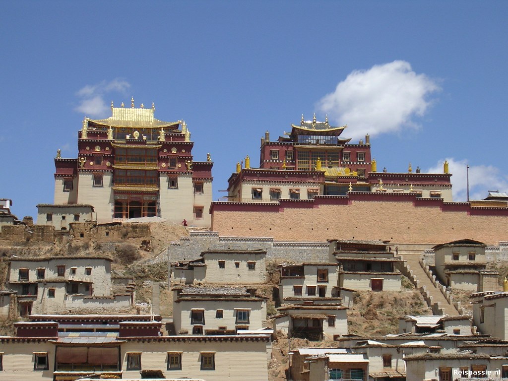 Van de bakker gelijk de bus gepakt naar het klooster waar we twee dagen terug ook al stonden. Dit Tibetaanse klooster heet voluit het Ganden Sumtseling Gompa en is 300 jaar oud. Het is het belangrijkste in zuid-west China. Er leven 600 monnikken in en rond het klooster.