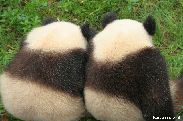 De rest van de dagen de highlights in de omgeving bezocht. Eerst naar Hualongxi, een “oud” plaatsje op een uurtje van Chengdu. Niet echt de moeite waard. Is een soort namaak van hoe het vroeger wellicht was. Geheel gericht op de drommen toeristen en bestaat alleen nog maar uit winkeltjes met kitsch en restaurantjes. En natuurlijk een dagje naar de panda's. Niet de mooiste dag want het regent eigenlijk de hele ochtend maar dat maakt de troetelbeertjes niet uit.