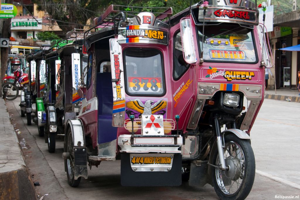 De Jeepney. Filipijns icoon. Er moeten er miljoenen van rondrijden, alleen al in Manilla. Althans zo lijkt het. Ze zijn werkelijk overal en komen overal, de straten staan er mee vol. Het is het transportmiddel waarmee je in elk gehucht kan komen. Deze “busje's” zijn ooit ontstaan uit Amerikaanse legerjeeps. Die waren hier in overvloed met de langdurige aanwezigheid van het Amerikaanse leger en bleken ook heel geschikt voor personenvervoer. Inmiddels zijn ze enorm verlengd zodat er flink wat mensen in kunnen en worden ze opgepimpt tot ware kunstwerken. Bijna elke Jeepney ziet er fantastisch uit. Een overdosis aan blingbling en paintbrush. Als de straat weer eens vol staat is het net of je op de kermis bent. Minder geweldig is de enorme hoeveelheid rommel die uit de uitlaat komt. Vrijwel zonder uitzondering rijden ze rond met een tornado aan uitlaatgassen aan de achterzijde. Het is dus vrij smoggie in Manilla...