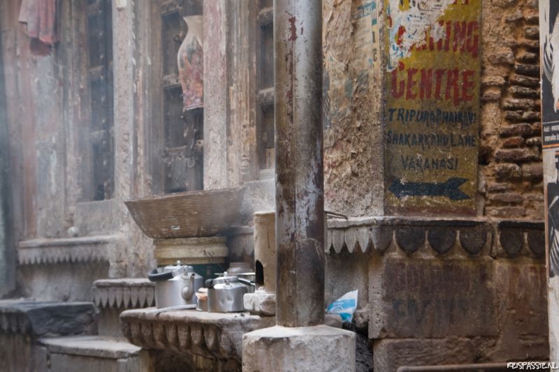 Nou ja, na die douche voelde het al weer een stuk beter. Eerst nog maar even wat eten op het dakterras van ons guesthouse. Het is een van de hoogste gebouwen in de oude stad en je hebt een prachtig uitzicht. Tenminste overdag, want 's avonds is het uitzicht over Varanasi vooral heel donker. De smalle steegjes laten weinig licht omhoog stralen.