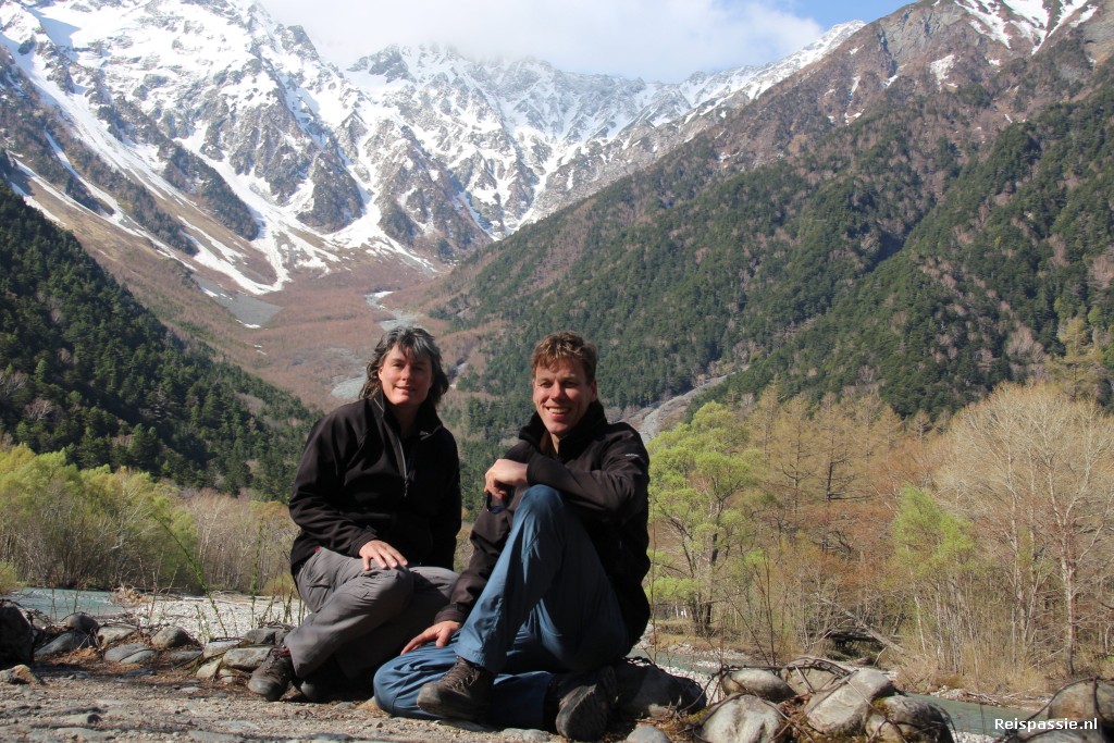 Opvallend trouwens hoe serieus Japanners hun buitensport nemen. Het merendeel loopt in prachtige outfit met volledige bepakking. We komen ook een aantal terugkerende groepjes met snowboards en ski's tegen. Kennelijk hebben ze verderop in het dal gekampeerd en vanaf daar geklommen en afgedaald. Zo te zien aan de onderkant van de boards was de sneeuw niet al te best meer!