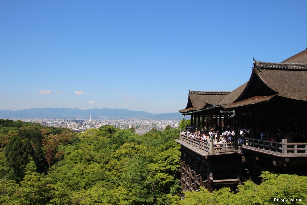 Dan een dagje bussen. Eerst in ons hostel een dagpas voor de bus gekocht en de bus naar de Kyomizu-dera tempel genomen. Deze tempel staat prachtig in het bos tegen een helling. Je hebt er geweldige uitzichten over de groene heuvels en de stad. Nu met de Kyoto Tower in het zicht. Rondje gelopen om de tempel heen door de bossen. Dan langs een heel aantal tempels gelopen en een rondje door het geisha district gemaakt. Zowaar twee dames tegengekomen. Dan vervolgd met het ‘Path of Philosophy’, een rustig paadje langs een beekje met mooie vissen. Ooit heeft er hier een bekende Japanse schrijver filosofische overwegingen gehad en zo is het balletje gaan rollen. Rustig wandelingetje van een half uur. Geëindigd met de mooie tuinen van de Ginkakuji tempel.