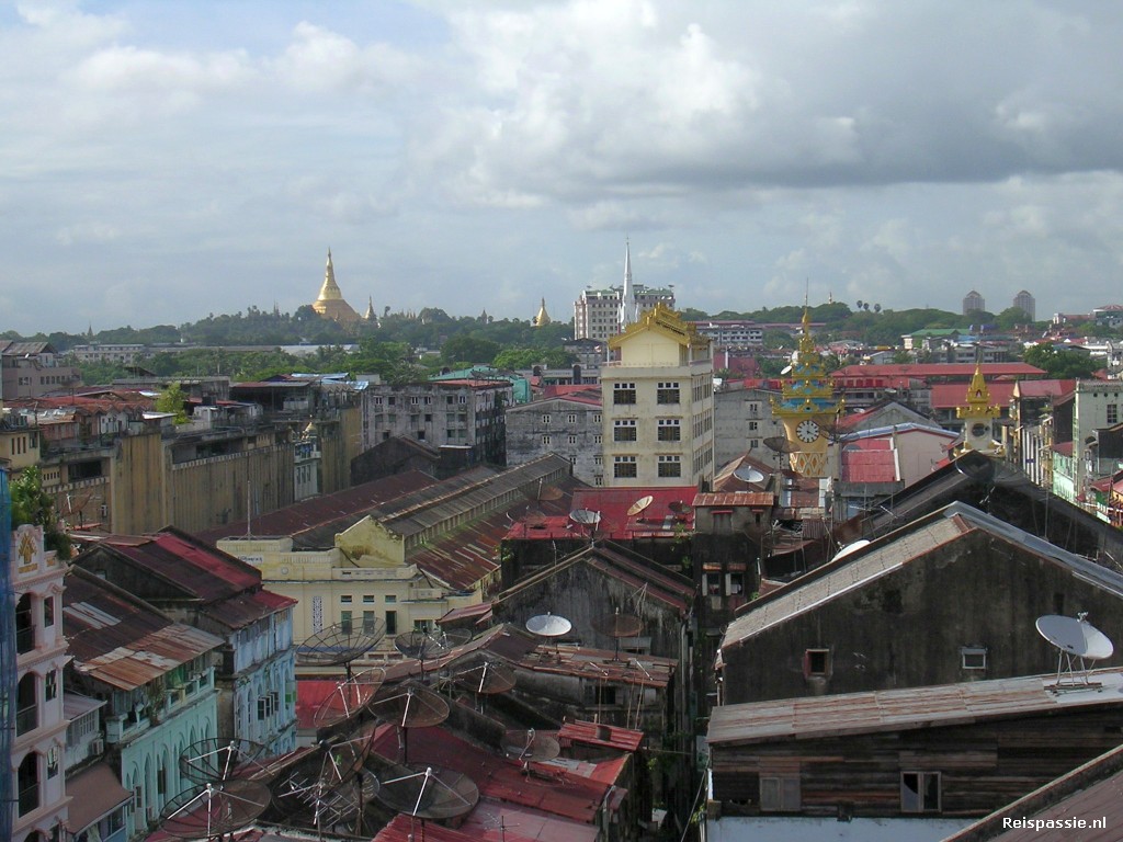 Dag drie. Ook deze ochtend weer gebeld naar het vliegveld maar er is nog steeds geen nieuws. Dus eerst maar even ontbijten op het dakterras bij ons guesthouse. Het heet "the Whitehouse" en heeft zeker zoveel trappen als z'n Amerikaanse naamgenoot. Als je naar het dakterras gaat ben je eenmaal boven totaal uitgeput. Maar het is dan ook wel een van de hogere gebouwen in Yangon en heeft een prachtig uitzicht.