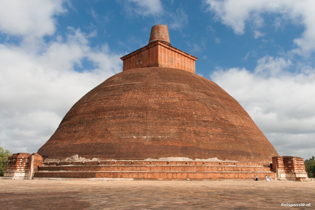 De oude stad ligt naast het moderne Anuradhapura. Het is een behoorlijk uitgestrekt gebied dat we met onze gehuurde fietsjes te lijf gaan. Het meeste van wat hier is terug te vinden dateert van rond het begin van de jaartelling. Veel ruïnes dus van tempels en gebouwen. Het meest indrukwekkend zijn de dagoba's. Deze enorme belvomige bouwsels zijn geheel van baksteen gemaakt. De grootste was ooit het derde grootste gebouw ter wereld, na twee Egyptische piramides.