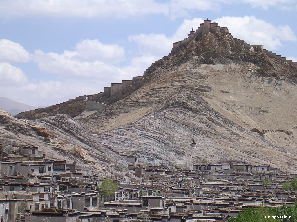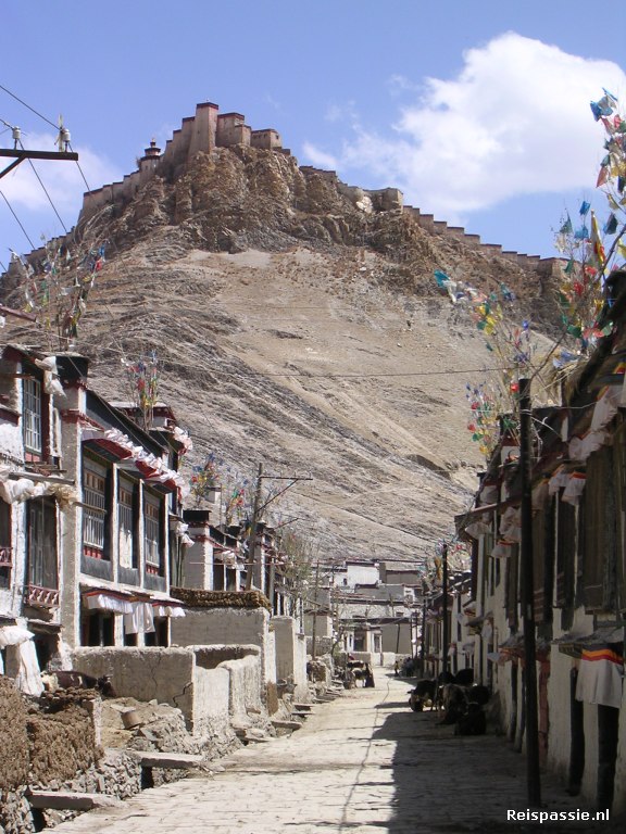 Om twaalf uur in Gyantse. Onze trip hebben we zo samengesteld dat je lekker veel tijd overhoudt om van alles te bezoeken. Je kan deze route ook in een dag of vier doen maar dan wordt het veel gejaagder en daar hebben we even geen trek in.