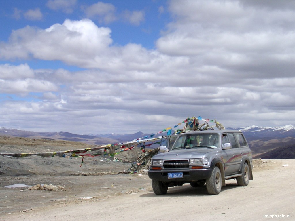 De hoogste pas van vandaag is 4618 Mtr. Ook op deze top wapperen de gebedsvlaggen in de (meestal erg harde) wind. Het zijn prachtige plekken voor foto's; de enorme besneeuwde toppen in de verte met vlaggetjes op de voorgrond.