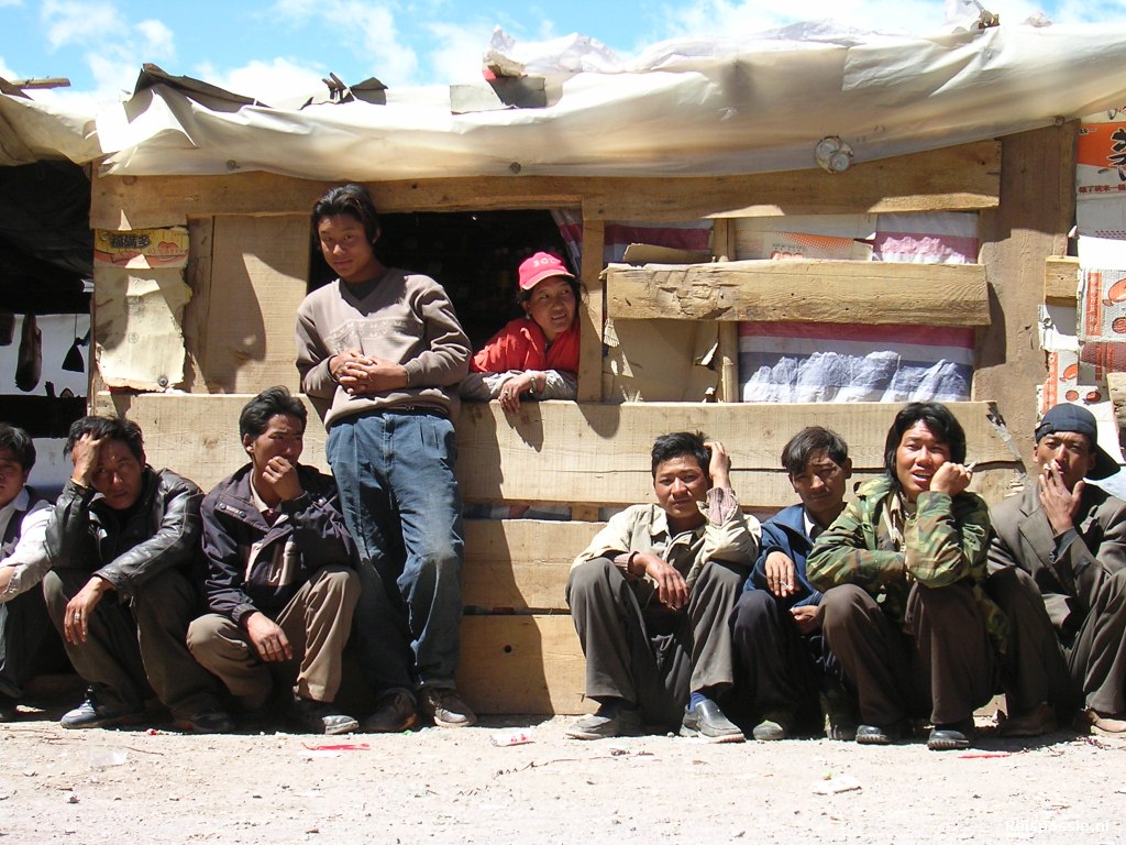 Het zijn huizen van mensen die voor Tibetaanse begrippen vrij rijk zijn en dat zie je terug in de afwerking. Na dit bezoek vertrokken. Het is een half uurtje rijden tot het roadblock. Er staat reeds een rijtje trucks en andere 4wd's te wachten. We doden de tijd wat met rondkijken bij de wachtende Tibetanen die ons met grote ogen volgen.