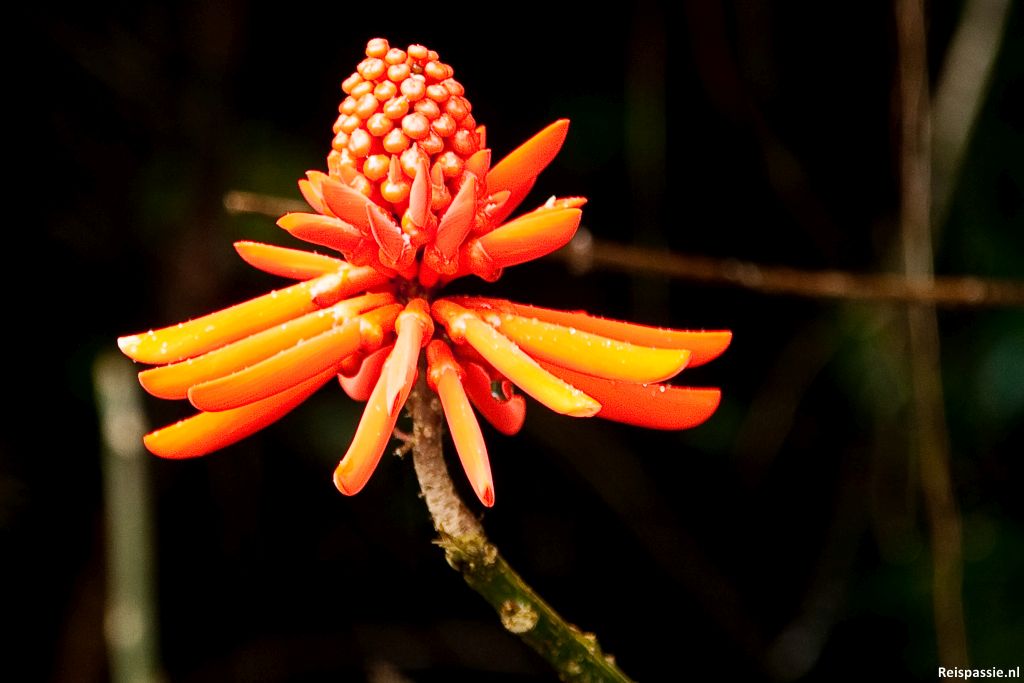 De wirwar aan riviertjes is schitterend en gaat soms geheel schuil onder de uitbundige plantengroei. Schitterende bloemen gezien bij sommige planten. Overig is de begroeiing van Torteguero nog vrij recent want een jaar of vijftig geleden is alles gekapt. Costa Rica zat in geldnood en de Amerikanen zagen geen enkel bezwaar om alles hier kaal te halen. Het gebied is in de jaren daarna weer geheel begroeid maar de honderden jaren oude echt grote jongens zijn dus pleitos. Maar ze hebben er hier de fastfood invasie voor terug gekregen, mogen dus niet zeuren...