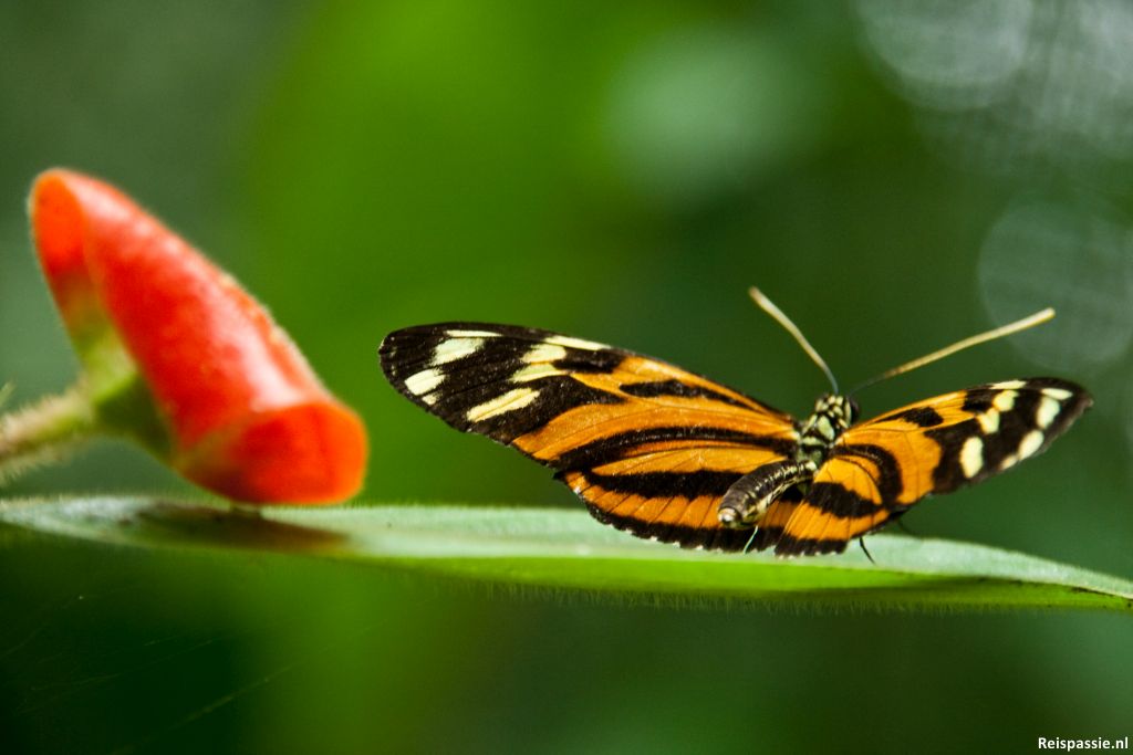 Waaronder de “blue jeans frog” een rood kikkertje met een blauwe broek aan, en een prachtige groene kikker op een blad (zie de foto). Er is ook een vlindertuin met prachtige vlinders. In de bomen liggen twee luiaards te slapen (tja inkoppertje...), deze aparte beesten verplaatsen zich heel traag hangend door de bomen, als ze dus al bewegen want die twee van vandaag zitten als een balletje haren in de boom. Verder een knaagdier met de naam agouti gezien. Lijkt een beetje op een grote eekhoorn maar dan zonder staart. Was een leuk tripje