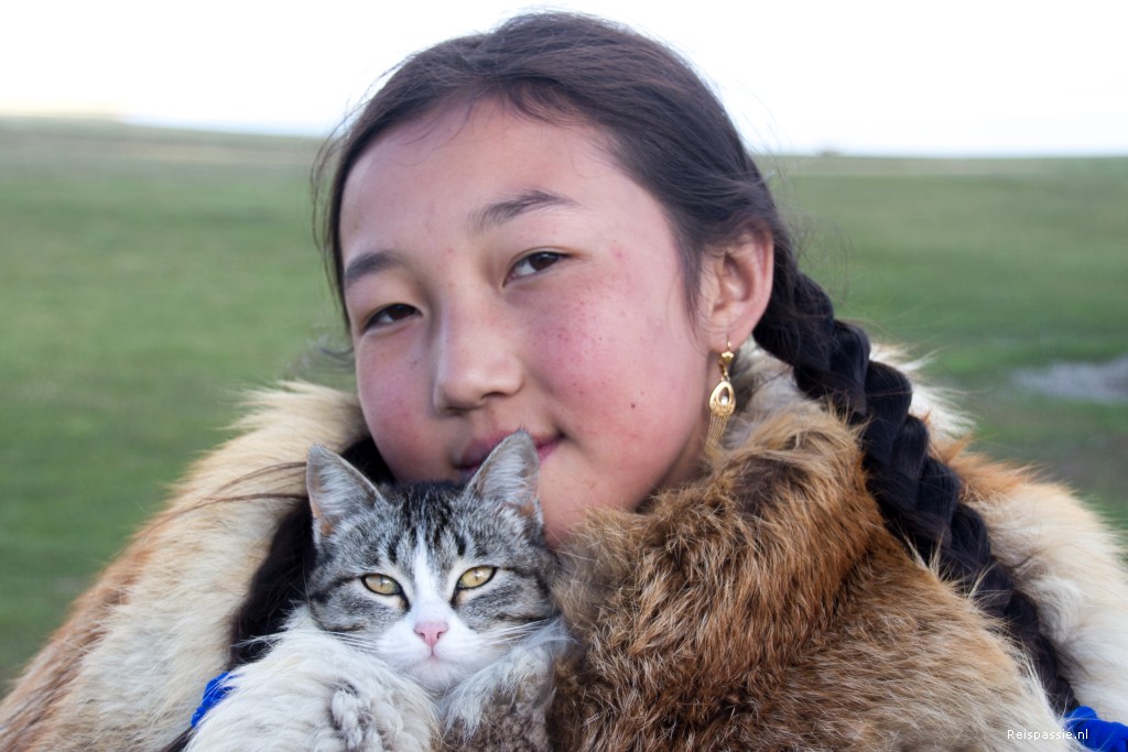Wij rijden nog zeker dik een half uur verder langs het meer over een spoor wat door het grasland loopt. Onderweg stoppen we nog even bij een stenen monument wat eenzaam als enige massieve gebouw in deze enorme vlakte staat. Uiteindelijk bereiken we in een verre uithoek de yurts waar we zullen gaan overnachten. Het zijn er vier, eentje voor de familie, een wat grotere om te eten en twee voor wie er zoal langskomt. Ze zijn van binnen fraai gedecoreerd.
