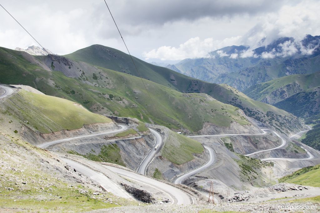 En dus pakken we in en gaan voor de laatste etappe, die naar Osh! Een dametje van het yurtkamp rijd even mee tot Sary Mongol en daarna begint het grote afdalen.