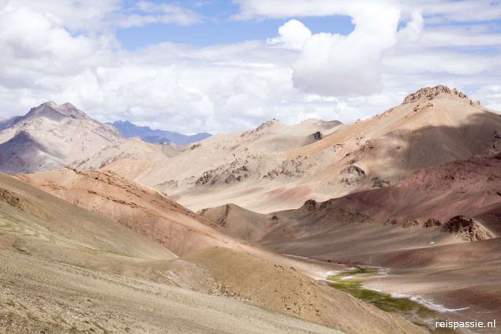We rijden weer over onverharde paden door prachtige dalen. De uitzichten zijn echt weer geweldig. Vandaag is echt een van de mooiste dagen uit de trip. Iedere keer als we een hoek omgaan is er weer een nieuw geweldig uitzicht. Lekker weer ook nu, zonnig met stapelwolken.