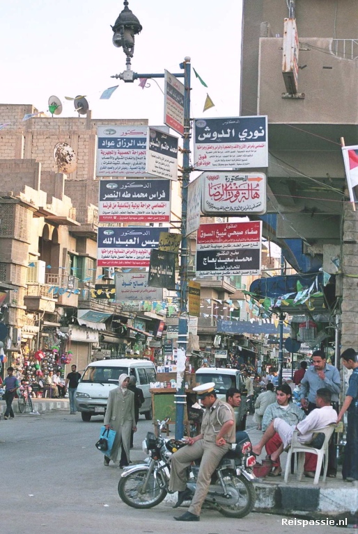 Op een groot plein in de stad is een heel podium met tribunes gebouwd om het verkiezingsfeest te vieren. Rijen dik staat men achter de hekken. We wachten een tijdje of er ook een band komt en gaan dan maar een rondje maken. Hele hordes jochies van een jaar of 16 komen bij ons staan en vragen een voor een de inmiddels bekende openers: "where are you from", "what's your name", "do you like Syria", en het wordt steevast afgesloten met "welcome to Syria". Meer diepgang is ook meestal niet mogelijk want daarvoor is de kennis te beperkt. Maar deze zijn in de overwinningsroes en willen vooral laten blijken hoe blij ze zijn met hun president en hebben het liefst dat wij dat ook even laten blijken. Maar hier praten we ons weer even tactisch uit want ik heb zo m'n twijfels over El Presidente... Op een gegeven moment wordt de massa zo groot dat we er wel klaar mee zijn en zoeken we de buitenkant van het feestgedruis maar weer even op. Als de band dan nog veel langer op zich laat wachten geloven we het helemaal wel en gaan terug naar het hotel.