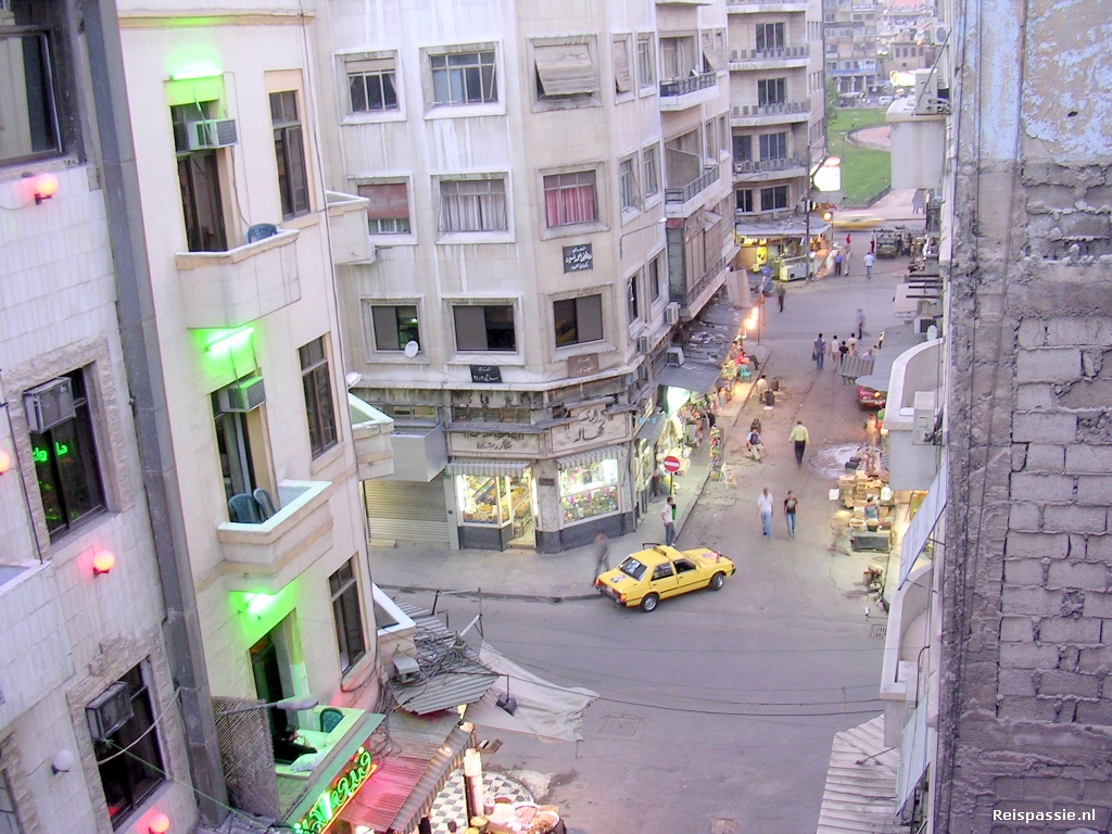 vliegen voor de entree. Buiten de enige aanwezige bus benaderd en dit blijkt inderdaad de airportbus naar het centrum te zijn.Een half uurtje later staan we in hartje Damascus, tenminste dat dachten we, het blijkt een busterminal net buiten het hartje te zijn... dus aan de wandel! De stad wordt ook maar langzaam wakker en bij het eerste guesthouse bellen we de eigenaar uit bed. Goeiemorgen! En hij heeft pech want het is niet helemaal wat we verwacht hadden. De tweede poging heeft meer succes, mooi kamertje gevonden en niet zo duur als de vorige. Dus onze intrek genomen in het Beirut Hotel.De rest van de dag maar rustig aangedaan, beetje geslapen en wat geslenterd door het centrum. In de souk, de grote wirwar van smalle overdekte winkelstraatjes, is vrijwel niets open. Het is vandaag vrijdag en dat is hier net zoiets als zondag in Staphorst, erg rustig dus. Wel nog even bij verschillende immigratie kantoren langsgegaan om te proberen ons visum om te laten zetten naar een multiple-entry. Zonder succes want ook hier is het erg rustig.